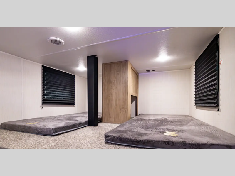 You will always find a comfortable place to relax with friends and family, cook with the full kitchen amenities, and clean up daily in the bathroom. There are also cozy sleeping spaces, plenty of storage options, and durable construction materials so you can enjoy your trailer for years to come!