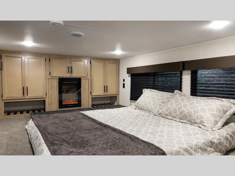 You will always find a comfortable place to relax with friends and family, cook with the full kitchen amenities, and clean up daily in the bathroom. There are also cozy sleeping spaces, plenty of storage options, and durable construction materials so you can enjoy your trailer for years to come!