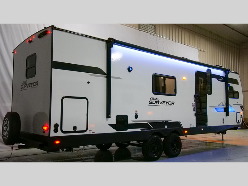 The Grand Surveyor travel trailers by Forest River include features and components found in high-end fifth wheels and motorhomes allowing you to go "Glamping" if you wish!
