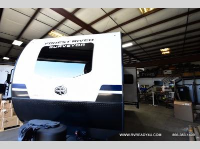 With any Surveyor Legend travel trailer by Forest River you will enjoy quality craftsmanship, convenient amenities, and at-home comforts. The Azdel composite walls provide a longer-lasting trailer, and the power tongue jack with a hitch light will get you back on the road in no-time. There are also Goodyear tires and a tire pressure monitoring system for hassle-free towing. Each model includes the Surveyor Legend Package that comes standard with oversized dinette storage access doors, front slam latch baggage doors, plus an automotive style tinted front windshield. You'll appreciate camping with a tankless water heater for endless hot showers, a 2" accessory hitch to bring bikes along, plus carpet-free interiors and a central vacuum system for easy clean up.